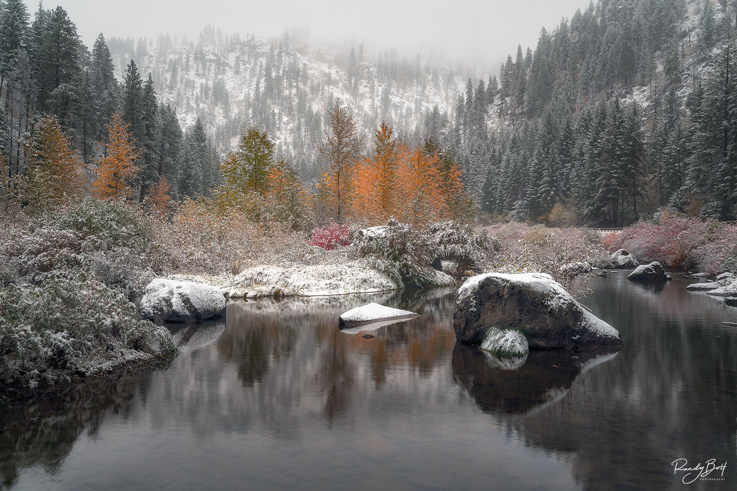 As fall gracefully transitions to winter, Tumwater Canyon becomes a canvas where the remnants of autumn meet the first whispers of snow. This seasonal overlap paints a tableau of contrasts and harmonies, inviting visitors to witness the delicate dance between warm and cold, color and white. The Wenatchee River, flowing serenely through the canyon, becomes a mirror reflecting the beauty above. The mirror-like surface captures the essence of fall foliage and the pristine blanket of snow, creating a mesmerizing play of colors and textures. Limited edition print from the Landscape gallery. Photo © copyright by Randy Bott.