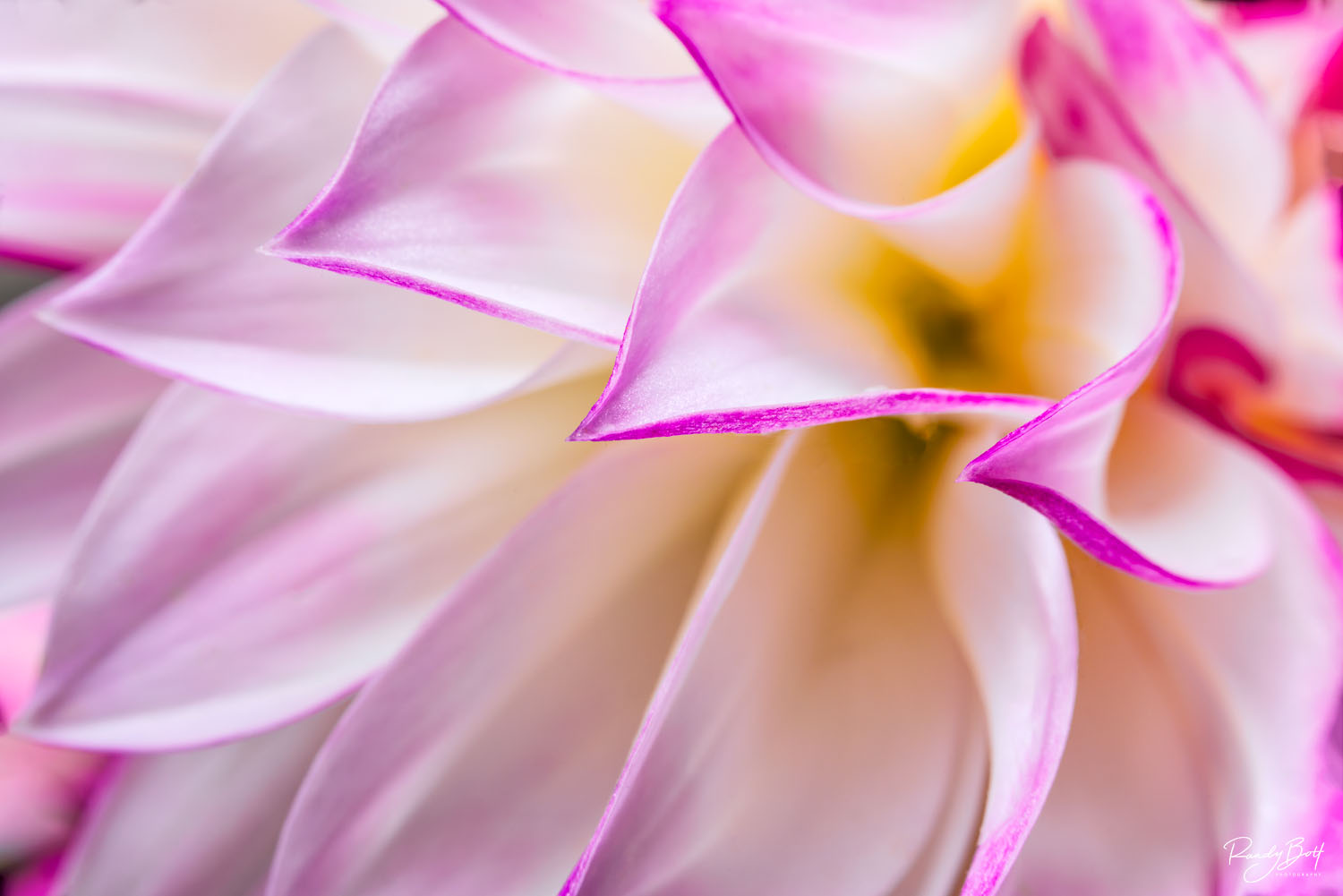 Abstract image of a pink and white dahlia using a Lensbaby Velvet 56 lens with macro tubes. Macro flower photography of dahlias is a great way to spend the afternoon. Dahlias were declared the national flower of Mexico in 1963 and the tubers were grown as a food source by the Aztecs. Limited edition print from the Abstract gallery. Photo © copyright by Randy Bott.