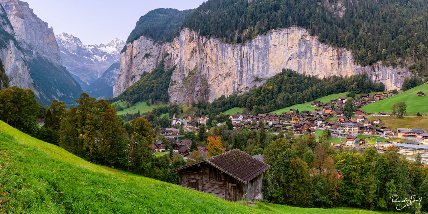 As the sun climbs higher, the charming wooden chalets that dot the valley come to life, their windows reflecting the vibrant hues of the sunrise. It's a moment of serene beauty, where nature's majesty is on full display, leaving visitors awe-struck by the sheer magnificence of Lauterbrunnen at sunrise. The valley, wrapped in the soft hues of dawn, becomes a sanctuary of peace and wonder, inviting all who witness it into a world of natural enchantment. Limited edition from the European Fine Art and Panorama galleries. Photo © copyright by Randy Bott.