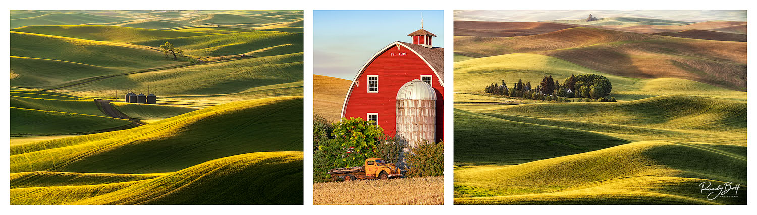 One of the standout features of this triptych is the inclusion of Palouse's most famous barn. Set against the backdrop of rolling loess hills, this iconic structure has become a symbol of the region. Its weathered facade and rustic charm evoke a sense of nostalgia and rural beauty that is truly captivating.The two landscape prints in this triptych capture the vastness of the Palouse region. With sweeping fields and endless horizons, they transport viewers to a place where time seems to stand still. These prints invite you to immerse yourself in the tranquil beauty of this unique landscape. Limited edition print from the Triptych gallery. Photo © copyright by Randy Bott.